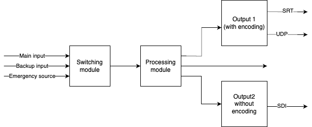 | No impact on the stream. Whatever comes in, comes out, which means no responsibility for signal correctness. | Support for multiple input and output protocols, including production protocols Emergency video support. |