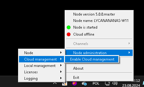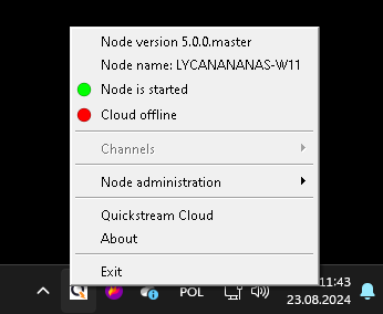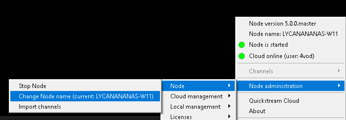 If you connected Node to the Cloud, you can still change its name by opening Quickstream Node Setup, right-clicking on the Quickstream icon, opening Node administration, then Node and Change Node name option. Next, enter the new Node name.