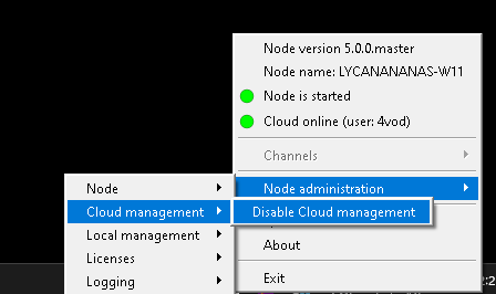 Disconnecting Quickstream Node from Cloud is also very simple. Open the Quickstream Node Setup application, go to Node administration,Cloud management, and select Disable Cloud management. Then, follow the instructions on your screen.