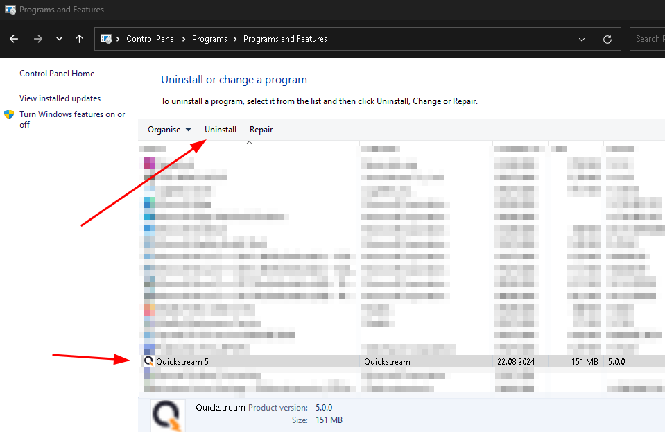 To remove Quickstream Node, go to Control Panel,Programs, and click Uninstall a program.