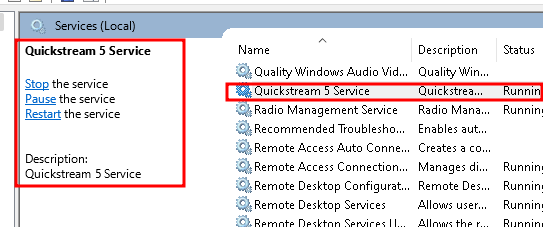 After the installation, check if Quickstream Node is running in services.msc. Please note that Quickstream Node is a headless application running in the background.