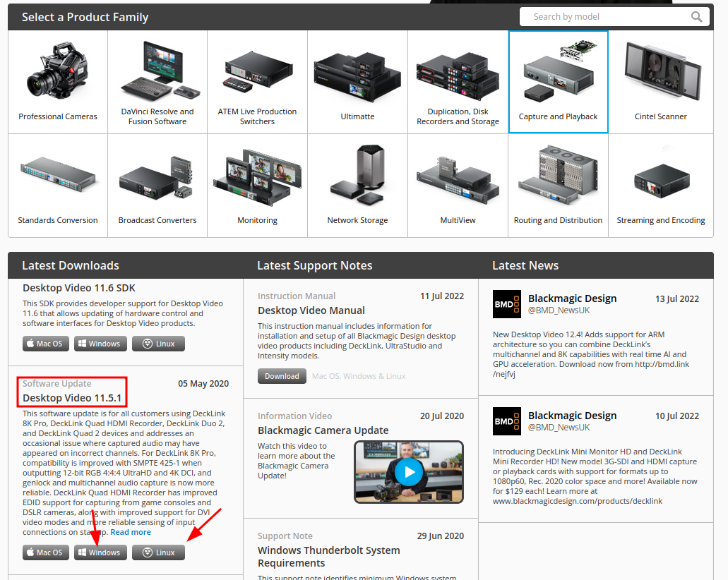 Select Capture and Playback, then search for the version currently used by Quickstream Node. You can check which version of Decklink driver we are using in the Third party components chapter of the documentation. At this moment, we are using version 14.1.0. Then download that version of Software Update regarding to OS that Quickstream Node is using. Finally install it on same server as Quickstream Node is running.