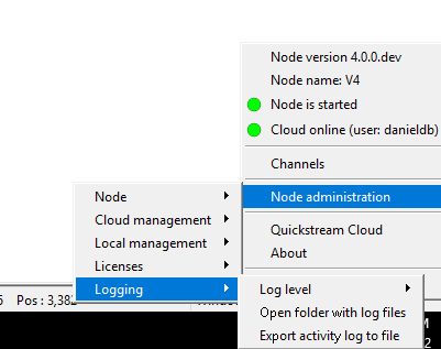 You can open Quickstream Node log folder using Quickstream 5 Setup from the windows tray.